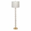 With a body made of a clear glass, the Aspen Table Lamp draws inspiration from the works of traditional artisan designers. The lamp’s transparency is accented by a painted antique gold rod through the glass and matching plinth. It is topped with an off white tapered linen shade.
