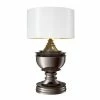 The classic pillar table lamp is elevated with this solid crystal design on a brass plinth and white linen shade.