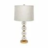 Citing inspiration from the luxury furnishings of a Mykonos resort, this table lamp pairs a cylindrical marble base with brass-finished accents and a White Linen Drum Shade.