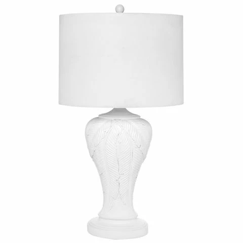 Give your home some tropical flair with this beautiful designed white detailed palm leaf motif table lamp.