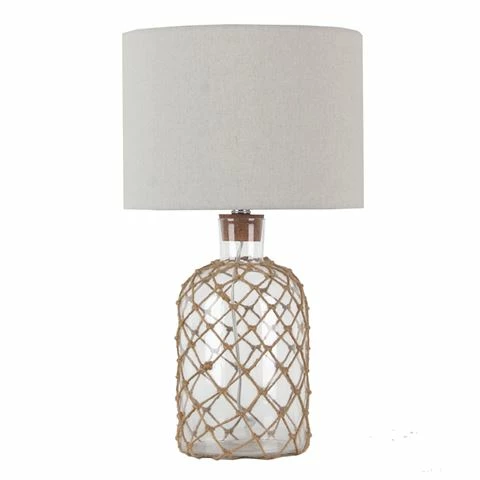 This glass base table lamp, inspired from the Beach Villa collection is a stunning one with the natural rope accent, adding texture and character to the lamp.