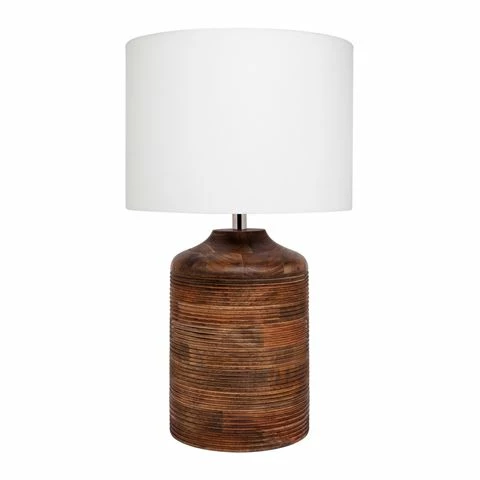 A statement shape with gorgeous texture, the Topaz table lamp is constructed from beautiful mango wood intricately carved with horizontal lines creating a solid piece that is both modern and classic, and offers eternal style. Finished with a white linen look drum shade, the Topaz table lamp is 71cm high offering a substantial feature that slips effortlessly into any interior scheme.