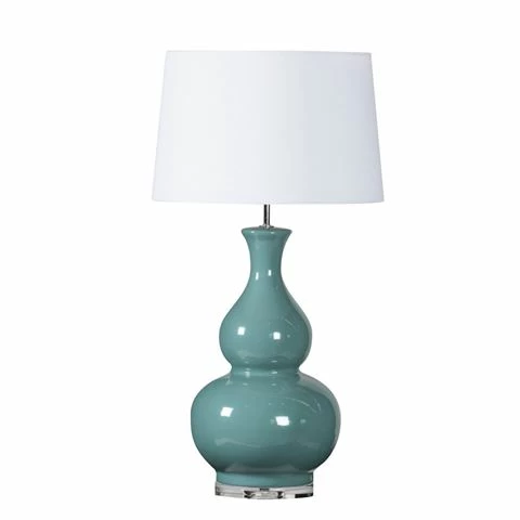 The Clarence Lamp is the perfect balance between a traditional and a modern style with a gleaming teal green base and a crisp white shade. Its curved, gourd-inspired shape adds a sculptural element to any room, while the acrylic base gives a distinctive twist.