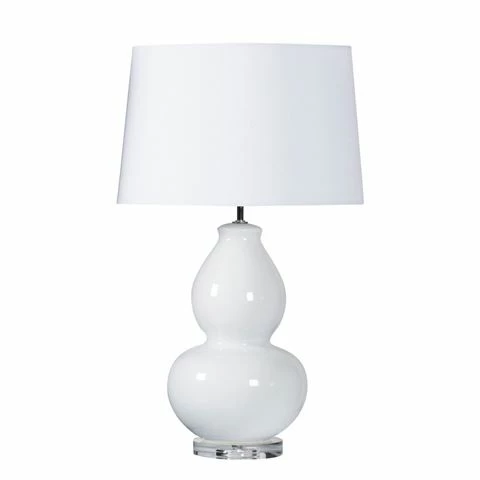The Kennedy Lamp strikes a balance between classic and modern with an acrylic base give it a distinctive twist. Sculptural, it comes in bright white with an empire cotton shade.