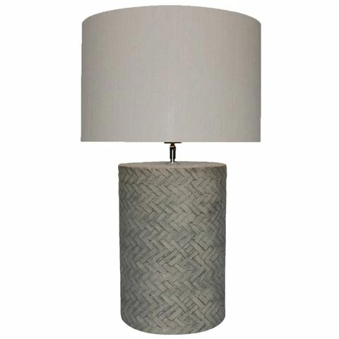 The Silo Lamp is hand crafted from concrete and has a concrete lattice pattern finish with a natural shade for a modern industrial look.