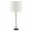 Bring the Bahamas into your home with this beautiful pale duck egg blue ceramic lamp with crystal at the bottom of the lamp base with a white linen drum shade.