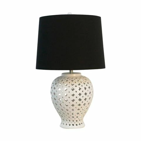 Light up your living space with this Ceramic Table Lamp with Lattice Design complete with Black tapered shade.