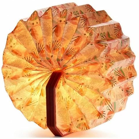 The folding/foldable lamp comes a pleated Tyvek-paper shade sitting between two pieces of wood. The lamp’s lights illuminate through the pleated paper, while the Tyvek’s folded nature allows you to manoeuver the lamp like a slinky, adjusting it in a variety of shapes and forms.