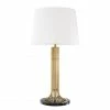 Its metal fixture with vintage brass finish includes a lampshade with a woven rattan look.
