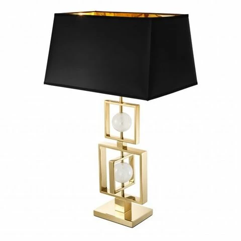 Invite the chic style of the Avola Table Lamp into your home. This striking geometric fixture with gold finish nestles two beautiful balls of rock crystal.