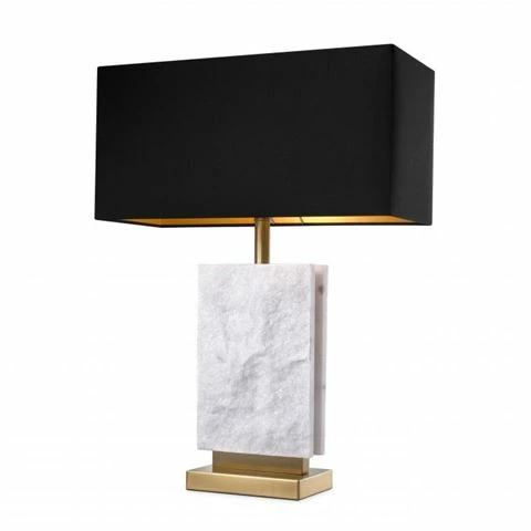 The Charleston Table Lamp works in both modern and traditional settings. Comprised of white marble and antique brass finish details, it includes a black shade with gold coloured lining for a lovely warm glow when lit.