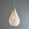 The hand-crafted nature of the lighting ensures unique designs with genuine warmth and appeal. An impressive large teardrop pendant featuring a delicately-patterned perforated matt white shell.